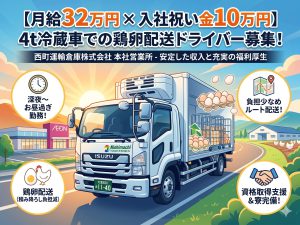 【月給32万円×入社祝い金10万円】4t冷蔵車での鶏卵配送ドライバー募集!